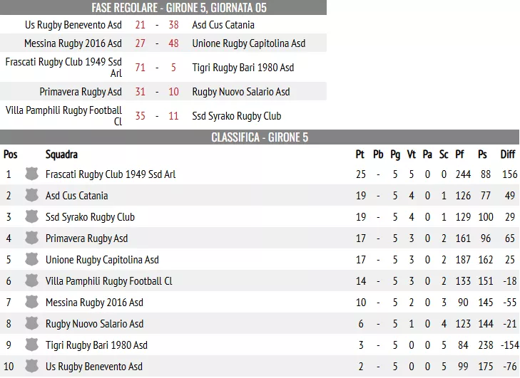 Scivola invece al terzo posto il Syrako Rugby Club, sconfitto in modo netto a Roma dal Villa Pamphili per 35-11. La franchigia ibleo-aretusea incassa così il primo stop stagionale, pagando a caro prezzo alcune assenze importanti.